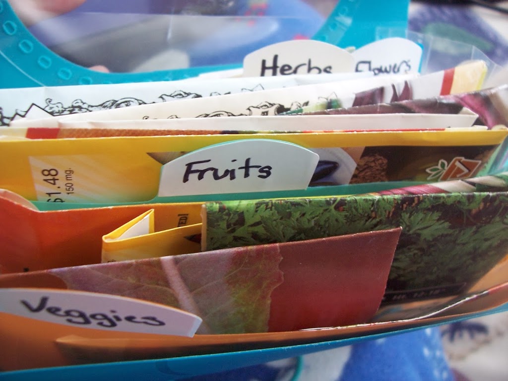 I spent some time today organizing my seeds. My goal is to figure out what I have and what I need so I don’t buy what I already have – like last year…and the year before. I have way too many packages of cucumber and sunflowers! I found that a medium size index card sorter that I had works nicely for seeds. Though it won’t work for long if I get too many more, it is pretty full as it is!