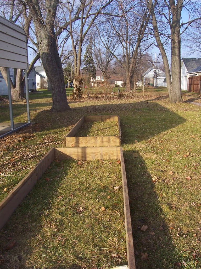 My dad brought out some old boards from the deck they had on their house and set them up as gardening boxes for me.