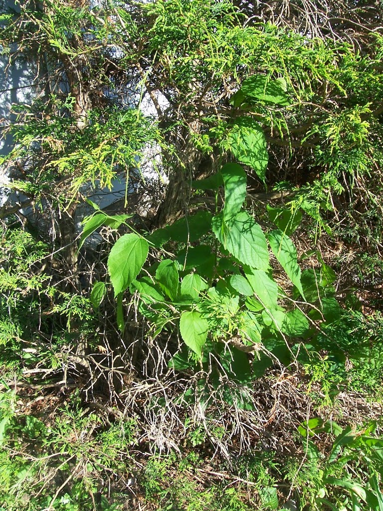 This is another tree/shrub/plant growing in among the bushes at the front (west) of the house. Again, I do not have a clue what it might be.