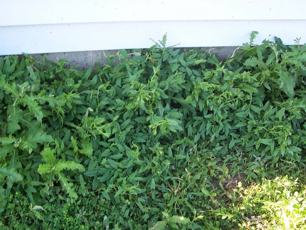 It is hard to see and part of it was mowed down by the company taking care of the lawn, but there is a small section of sedum growing on the southwest corner of the house. I really like sedum, so this makes me happy!