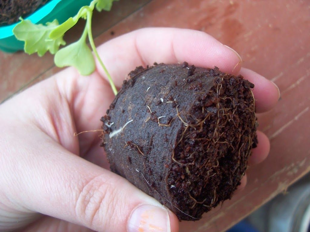 They were starting to show their roots on the outside of the coir pellets too – so it was time to replate them!