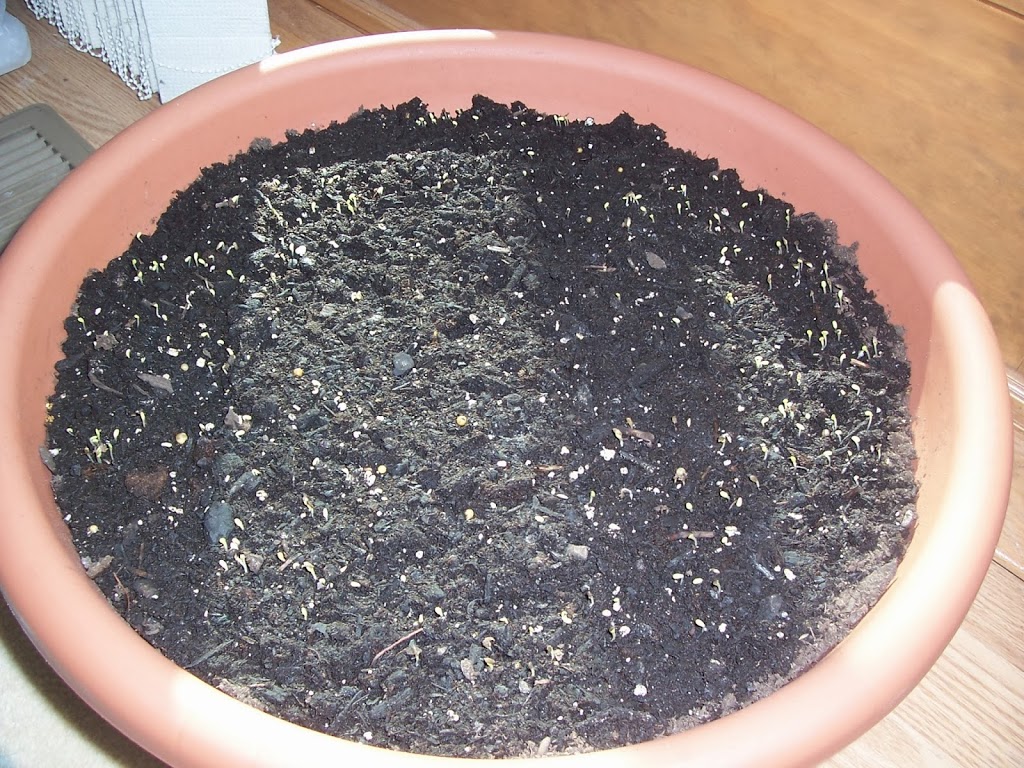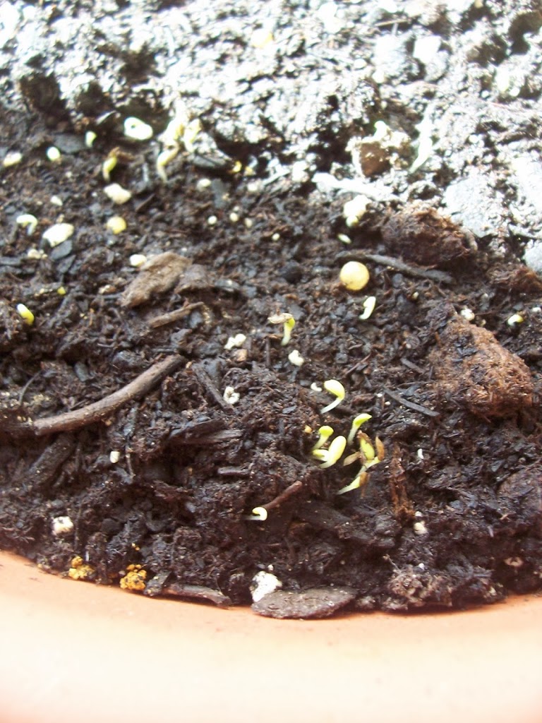 Lettuce sprouts fast!  I planted this four days ago and it is already starting to show tiny little sprouts.  Now my mouth is watering and I can’t wait for a delicious fresh salad!